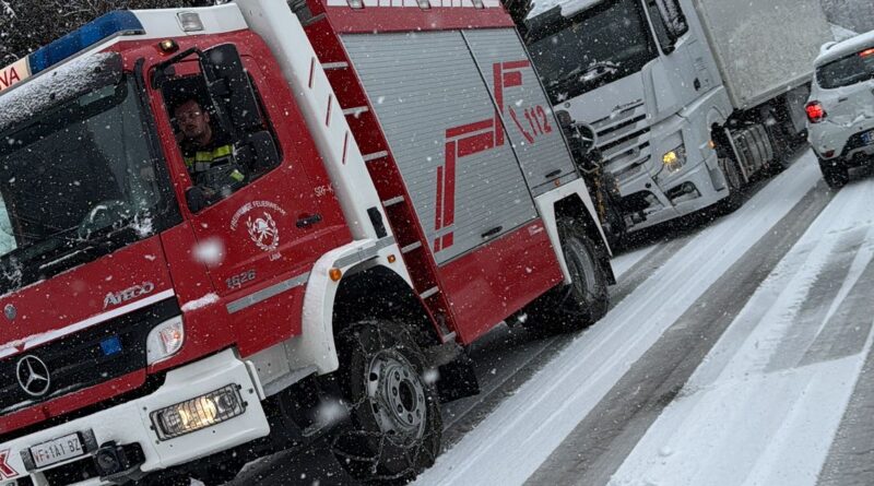 Der starke Schneefall am Donnerstag Morgen des 19. Februar 2026 verursachte zur Mittagszeit einen Einsatz „Alarmstufe A4 Bergung Schwerfahrzeug auf